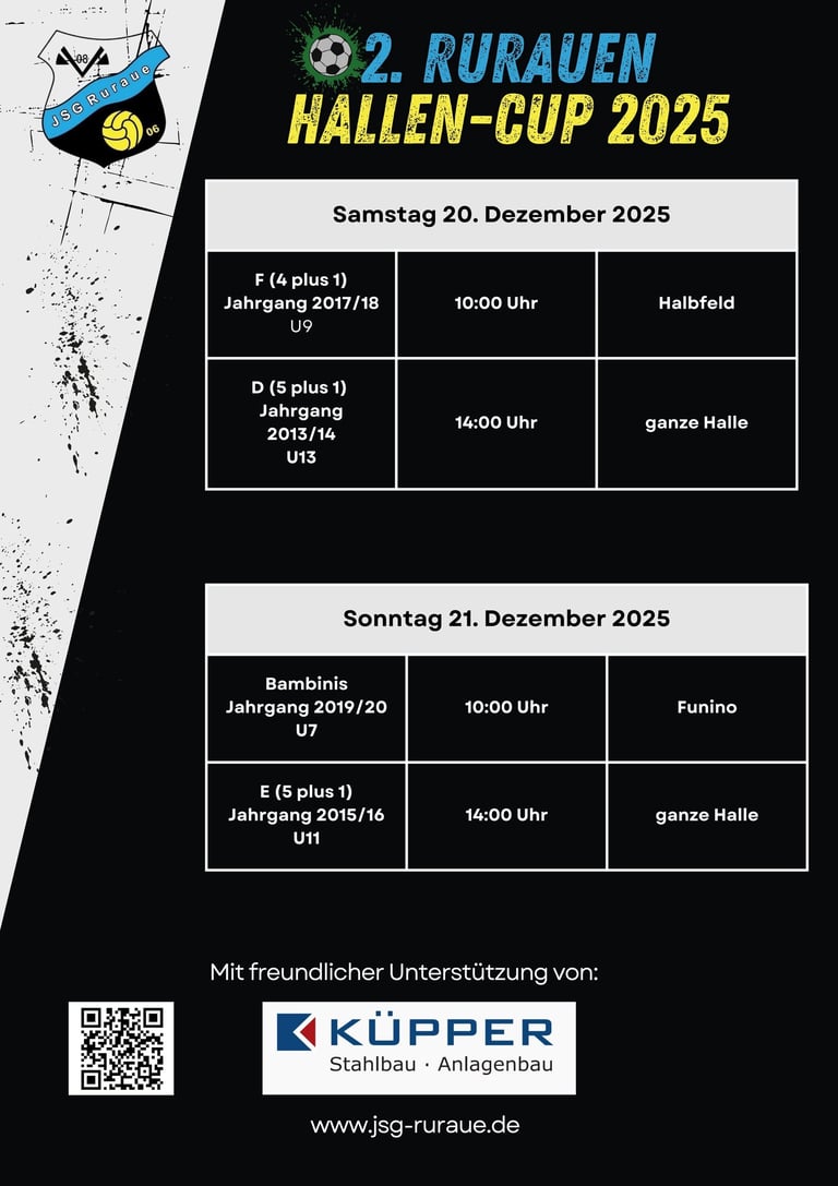 nach dem erfolgreichen ersten Rurauen Hallencup freuen wir uns sehr, wieder ein Turnier ausrichten zu können!